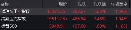 美东时间1月15日,美股市场在最新通胀数据和大型银行财报的双重利好下,迎来了显著上涨。道琼斯工业指数、标普500指数和纳斯达克指数分别上涨1.65%、1.83%和2.45%。