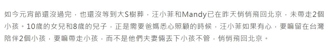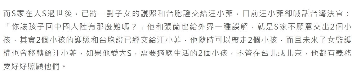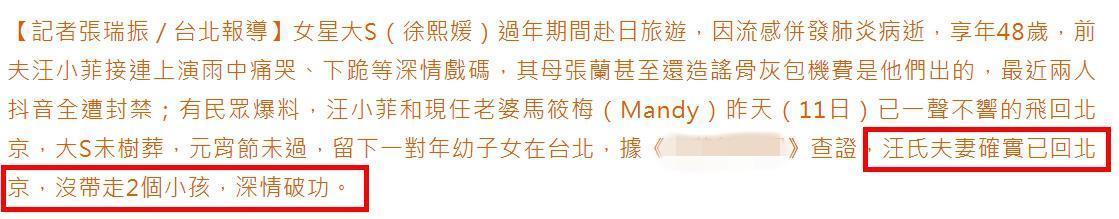 汪小菲本身也是无奈之举,因为他要等监护权确定转移到他身上,才有办法把小孩带回北京。