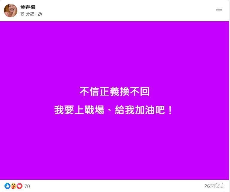 所以,她才会在深夜发文,“不信正义换不回,我要上战场,给我加油吧!”
